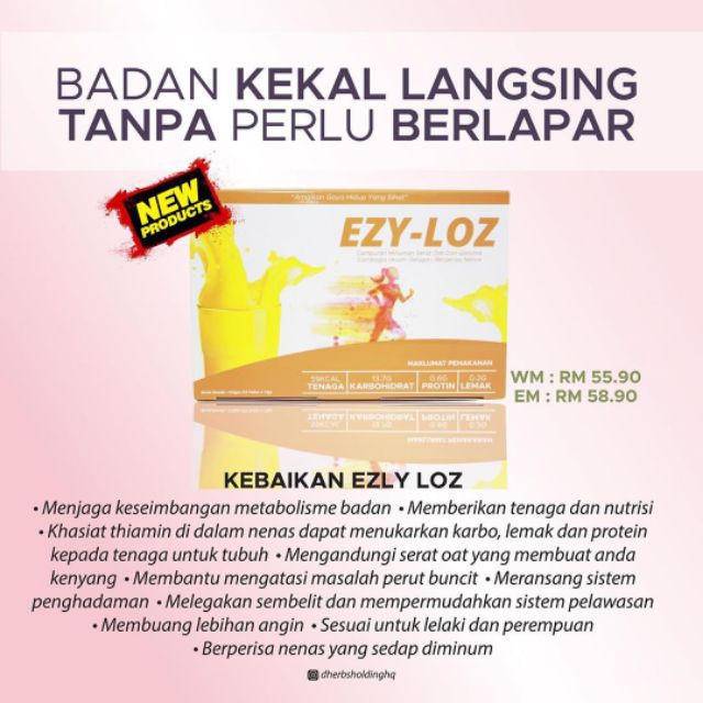 Dengan Ezy Loz produk terbaru dari Dherbs. Dherbs Diet Gold rm33 sekotak sm FREE POSLAJU postage juga dapatkan lain2 produk TERLAJAK LARIS dengan DISKAUN harga 30. Tidak ada produk kurus paling berkesan.