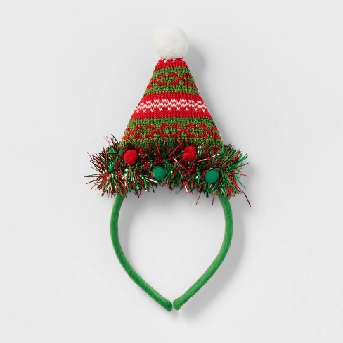 Santa Party Hat With Tinsel Headband Red Wondershop Target